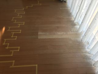 もう一か所のフローリングはリビングの窓のある所。雨が降りこんだり日焼けでガサガサに劣化。